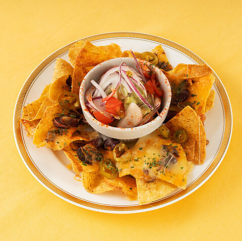 ビール和牛と自家製ワカモレを使ったオリジナルのナチョス。