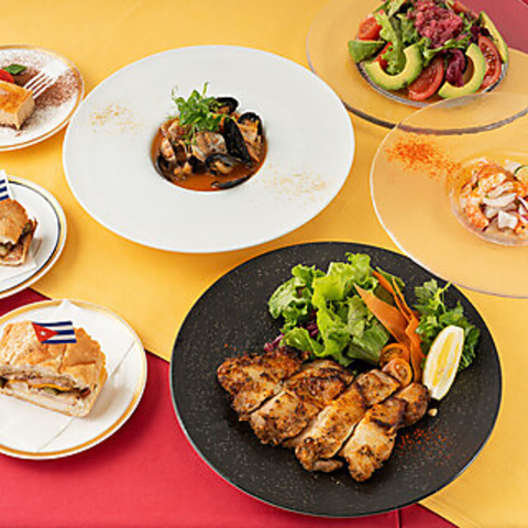 HAVANA1950の魅力を詰め込んだ一番人気のコース。セビーチェや魚介のエンチラーダ、ローストチキン、特製ソースで仕上げた東京No.1の呼び声高いキューバサンドなど、看板メニューが一度に味わえます。初めての方はもちろん、リピーターからも高評価。食後には自家製デザート付きで、食事の締めくくりまで大満足。