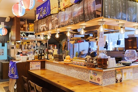 料理人が腕を振るう様子を間近で見られるカウンター席。お一人様や少人数でのサク飲み、デートにもおすすめです。目の前で仕上げる新鮮な食材や特製ダレの香りを楽しみながら、泡盛と旨味たっぷりジューシー餃子をご堪能ください
