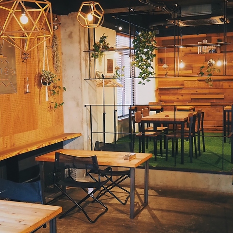 半個室のテーブル席(4名様)が3つもあり、4名様までの友達同士の飲み会やカップルでのデートなど、プライベート空間でゆっくりお過ごしいただけます!アウトドアをテーマとしており、アウトドアのチェアやウッドテーブルなどアウトドア気分をお楽しみいただけます◎テーブル席は席数が限られるため、早めのご予約をお勧めしております!