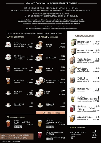 - ●すべてのコーヒーは世界最古の歴史を持つオランダのダウエグバーツを使用しております。●すべてのハーブティー(紅茶も含む)はアメリカのマイティーリーフ社の茶葉を使用しています。