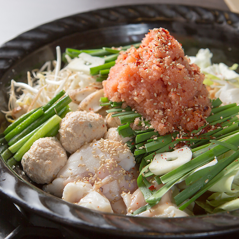 当店の名物【明太子もつ鍋】はじっくりと煮込み取った鶏ガラスープをベースに国産のプリプリで脂の乗ったもつを使用。そして【明太子もつ鍋】1番の特徴である明太子が1番上に溢れんばかりに!他では味わえない当店の名物を是非ご堪能下さい◎