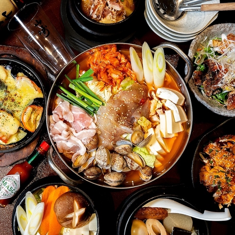 この冬にピッタリな、鍋と飲み放題のセットです。「国産和牛もつ鍋」か「豚と海鮮のキムチ鍋」の2種からお選びいただけます。はじめての方やサク飲みにもピッタリです◎ ※写真はキムチ鍋
