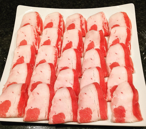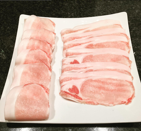 一般豚に比べて、オレイン酸が豊富に含まれ、又リノール酸の割合も低く、ヘルシーなおいしさが自慢の『くちどけ加藤ポーク』を筆頭に。お口の中でとろける黒毛和牛など絶品お肉を『焼きしゃぶ』スタイルでお召し上がりいただけます☆