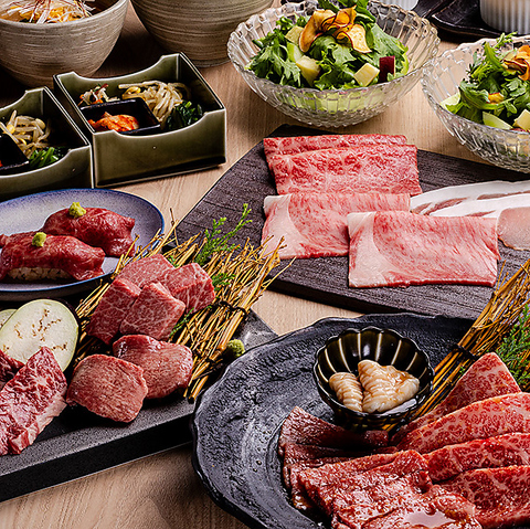 薩摩牛4%の奇跡を中心に、海鮮も楽しめるプレミアムコース。肉寿司、ステーキ、焼肉とお肉の食べ方も色々。☆プライベート飲み会、各種宴会など様々なシーンでぜひご利用ください♪