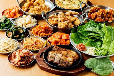 当店人気のナッコプセ、サムギョプサル、ポッサム、ホルモン鍋の4種類の中からメインを選ぶことができ、さらに!パンチャン(おかず)やチキン、ご飯が食べ放題!ビールはもちろんマッコリやチャミスル含む飲み放題付!女子会や各種ご宴会に是非お待ちしております!