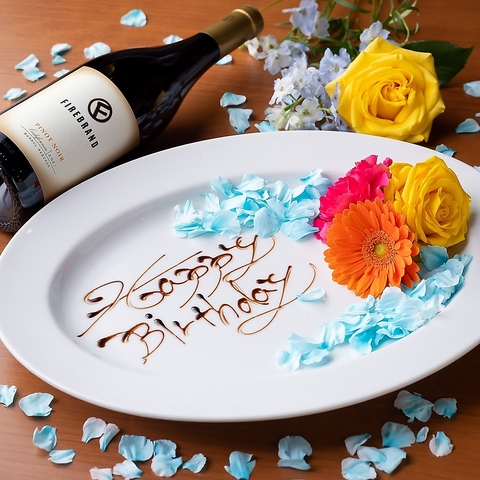誕生日・記念日にはメッセージ付きプレートをご用意します♪大切な日に素敵な思い出を当店でお作り下さい