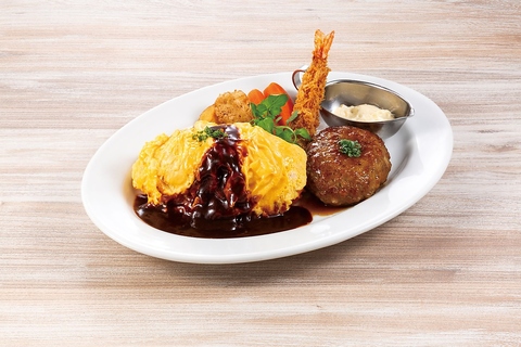 Rice omelet, hamburg steak and deep-fried prawn platter 税込 1980円(税込)
