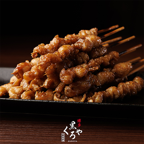 当店お勧めの一品。外はパリッと香ばしく、中はもちっとした食感の「博多かわ串」を是非ご賞味ください。