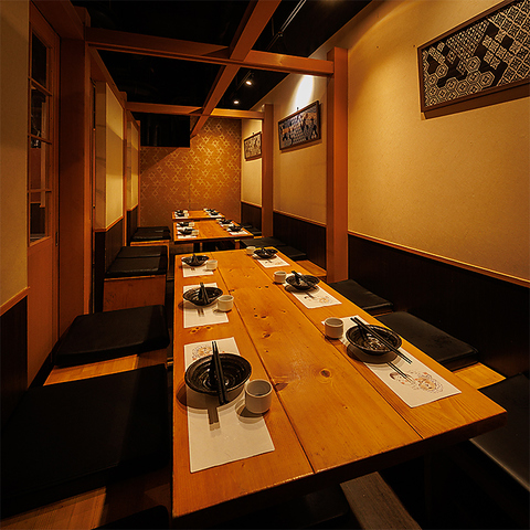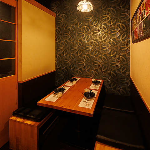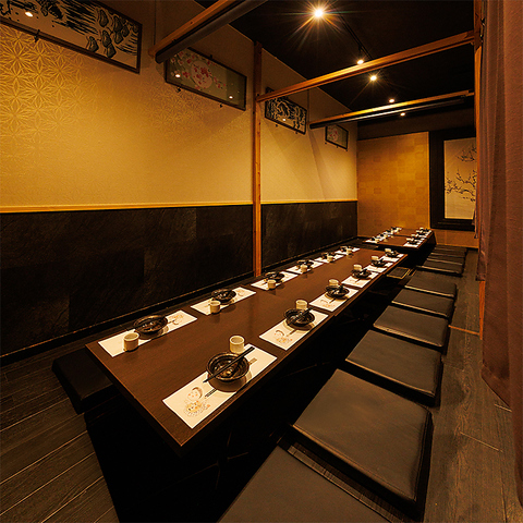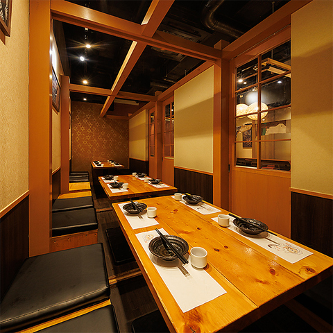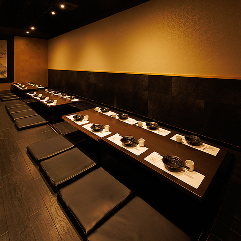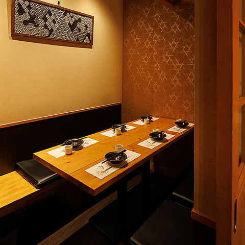少人数からご利用可能な扉付き個室を完備。寛ぎの空間でこだわりの九州料理と旨い酒をお愉しみください。