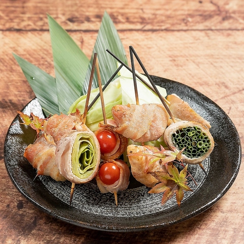 大人気の野菜巻き串!旬の野菜や定番の野菜を豚バラで巻いた絶品の一品!ぜひご堪能ください!