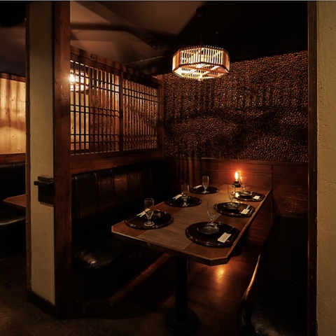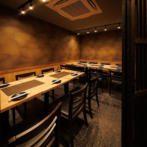 【完全個室完備】店内に入ると隠れ家のような寛ぎの空間が広がります。個室席は2名様から団体様まで幅広く対応!最大70名様までの個室もご用意可能です。お仕事帰りの飲み会、接待や二次会、各種ご宴会をお楽しみください。飲み放題付コースは多様な価格帯でご用意しております◎ただいま飲み会・宴会のご予約受付中!