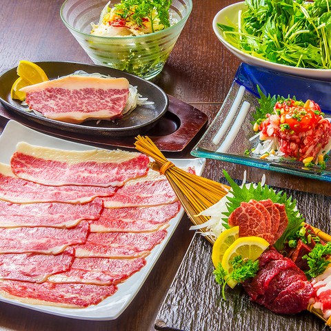 厳選された極上の馬刺しと、新鮮な海鮮料理を存分にお楽しみいただけます。特に馬刺しは、丁寧に処理された新鮮な馬肉を使用し、口の中でとろけるような食感と深い旨味が特徴です。お酒との相性も抜群で、至福のひとときを演出します。