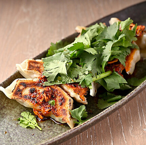 クセ強餃子!ピリ辛の麻辣餃子をたっぷりパクチーと一緒にどうぞ! レギュラー580円(税込)