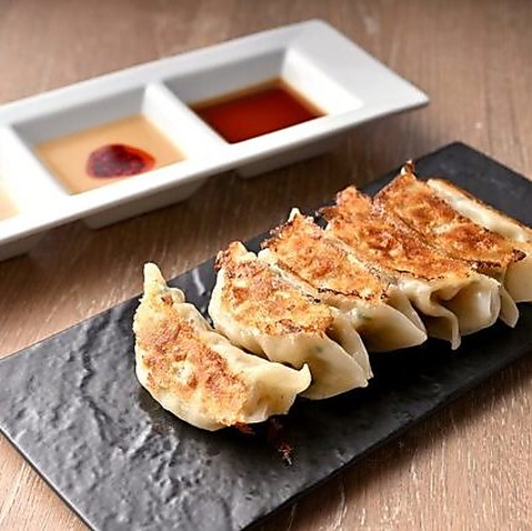 来店したらまずはこちら!当店の特製餃子は、パリッともちもちの皮とジューシーな餡がたまらない一品です。お好みで3種類の付けダレを使い分けて、味の変化もお楽しみください!まずは頼んでいただきたい自慢の餃子です♪/レギュラー450円(税込)