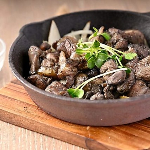 ご注文が入ってから丁寧に炭火で炙る地鶏の炙り炭火焼きは、地鶏ならではのしっかりとした歯ごたえと炭火の香ばしい風味が最高のハーモニーを奏でます。お好みで柚子胡椒を添えていただくと、より一層お酒が進む逸品です◎/レギュラー950円(税込)