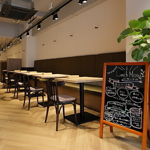 高い天井とゆとりを持って配置されたテーブル席は、開放感あふれる空間を演出しています。隣席との距離も保たれているため、周りを気にせずゆったりと食事や会話を楽しめます◎落ち着いた雰囲気の中で、美味しい料理を心ゆくまでご堪能ください♪
