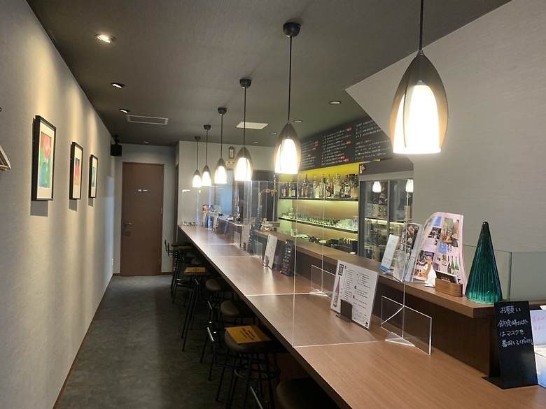 静かな雰囲気のカウンター席です。女性ひとりでも過ごしやすいお席です。
