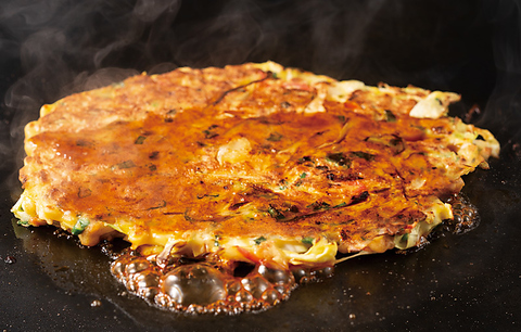 広島お好み焼きに魚介の具材をプラス!
