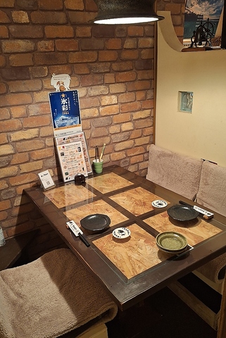 | テーブル | 2名様×1 | こじんまりとしたプライベート空間。落ち着いた雰囲気のなかでのサシ飲みで会話が弾みます |