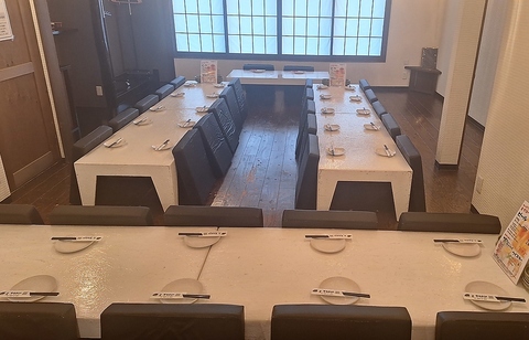 | お座敷個室 | 40名様×1 | 大人数でのご宴会に最適な広々としたお座敷をご用意しております。最大45名様まで一堂にご利用いただけ、会社のご宴席、親睦会、サークルの集まり、地域のお祝いごとなど、年間を通じて様々なイベントに最適です。2Fフロア全体を貸し切ることもできるので完全なプライベート空間で賑やかなひとときをお過ごしいただけます。 |