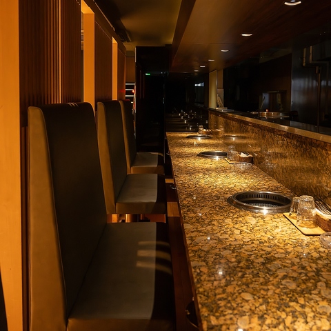 御一人様でも気軽にお立ちよりいただけるカウンター席もご用意しております。広々としたテーブルですので1名様あたりのテーブルも広く、ゆっくりとお食事をお楽しみいただけます。横並びに座れる為、ご友人同士やカップルで、ゆっくり語り合いたいときにもオススメです♪