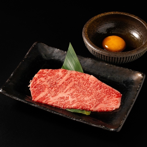 『すき焼き・しゃぶしゃぶスギモト本店』伝統の割下で味付けした厳選黒毛和牛ロースをさっと炙り濃厚な卵黄にくぐらせてお召し上がりいただく逸品濃厚で深みのある味わいはアルコールやご飯によく合います。