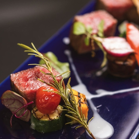 九州産を中心に厳選した黒毛和牛。見た目も華やかな逸品をご用意しております。