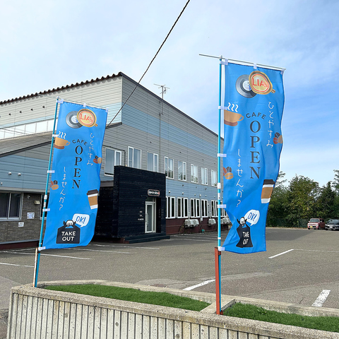 青空に映える、鮮やかな水色ののぼりが目印です☆