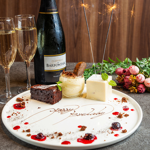 1500円で記念日で欠かせないメッセージ入りデザートプレートをご用意!ご希望のメッセージを添えて!