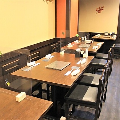 複数名でのご利用に便利なテーブル席をご用意しております。最大12名様でのご宴会にも対応可能です。広々とした落ち着いた空間は、女子会や会社の集まりなど様々シーンでご利用いただけます。美味しい料理と豊富なドリンクで、楽しいひとときをお過ごしくださいませ。