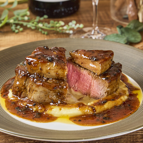 フォアグラ料理を引き続き提供中!牛フィレ肉とフレッシュフォアグラのロッシーニを販売中です。特別価格3480円(税込3828円)その他にもフォアグラグラタン、フォアグラリゾットのご用意もございます。