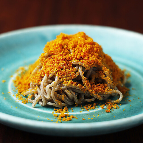惜しみなくふんだんに振りかけられたからすみ♪人気のナンバーワンメニュー!からすみそばといえば、元祖「俺の割烹」。蕎麦の太さや硬さも良くカラスミが絡むようにとっても計算してお作りしています。