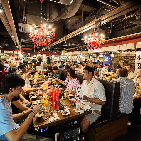 新橋駅から徒歩3分!!総席数90席!!会社宴会からプライベートの飲み会まで様々なシチュエーションでのご利用大歓迎です。貸し切りのお問い合わせもお待ちしております。店内は黒を基調とした大人びた雰囲気に赤色のシャンデリアが煌めく空間。ソファとチェアで構成されたテーブル席は各種シーンにぴったり◎
