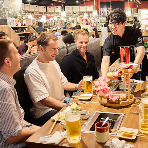 日本経済を引っ張る企業が集まる一方、下町×流行が入り混じった飲食店が連なる不思議な街・新橋。様々な国の方に日本最高峰の焼肉をお楽しみいただけるよう外国人スタッフが多数活躍しております。メニューはもちろん、商品・サービスのご説明もお任せあれ!!日本らしさの丁寧な「おもてなし」で国産A5ランク黒毛和牛の焼肉を堪能できる♪