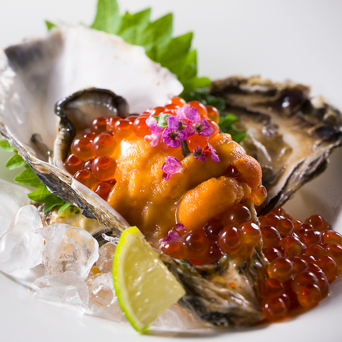 厚岸産牡蠣にたっぷりと雲丹といくら【要予約】