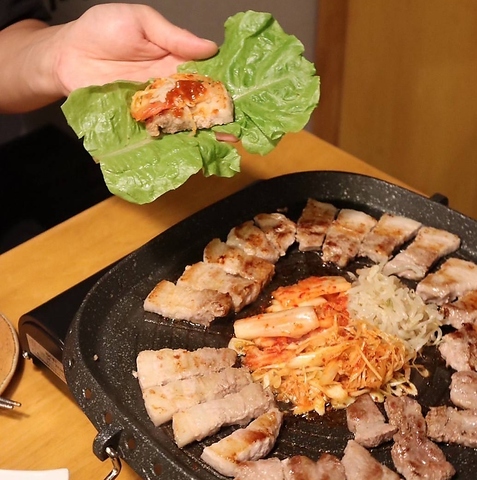 本場韓国で大人気のサムギョプサルは、ジューシーな豚肉をたっぷり使用してとても美味しいです!女性にも人気◎女子会やお子様にも大好評♪脂がすっきり落ちて程よくコクの残った豚肉と瑞々しい野菜と一緒に無限ループへといざないます♪野菜もたくさん採れ、お肉も食べられるので罪悪感からも逃れられます。ご家族ご友人とお召し上がりください