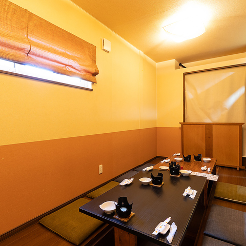 シンプルな造りでアットホーム感のある店内はゆっくりとお寛ぎいただける空間です。足を伸ばしてお食事ができる掘りごたつのお席は嬉しい個室席です♪仕切りを取り払えば広々とした団体様向けの個室としてもお使いいただけます◎接待や会社でのお集まり、お子様連れのご家族でのご利用など様々なシーンでご利用ください。
