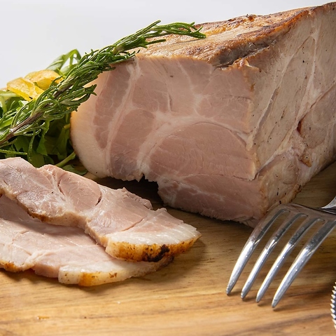 アルティシモポーク(スペイン産)を使ったこだわりのローストポーク。ガーリックソースをかけてお召し上がり頂けます