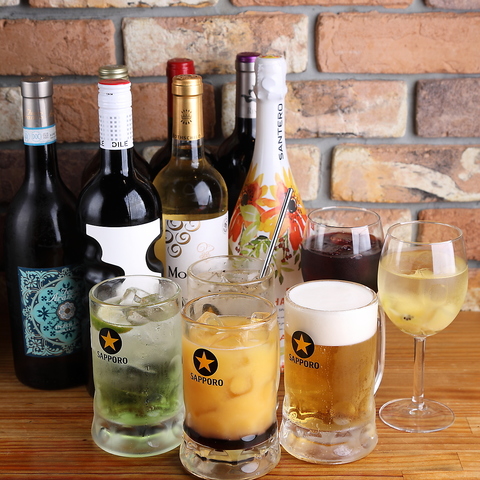 アルコール≪全380円~480円≫激安プライス!定番のレモン、特製レモン、塩レモン、パンチなど注文必至の“自家製レモンサワー”は4種類!女性に人気のサングリアももちろん自家製♪生ビール、カクテル、酎ハイ、ハイボール、本格焼酎、スパークリングワイン目白押し☆また、名物【がぶ飲みカチ割ジョッキワイン】は大容量で≪480円≫と大特価!