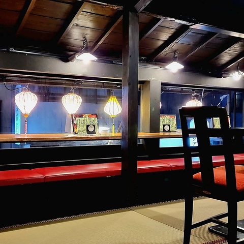 町家の温もりを感じる店内で色とりどりの提灯が彩ります。伝統とモダンが融合した空間をお楽しみください
