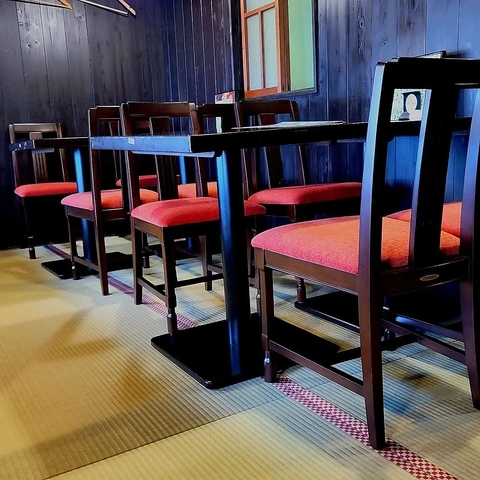 1Fに4名様用のテーブルが3卓ございます。グループや家族での食事に最適なスペースで、ゆったりとした雰囲気の中でお食事を楽しんでいただけます。是非とも友人や大切な人とご利用ください。