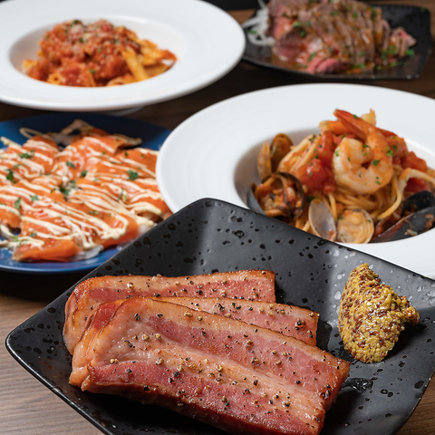 お肉、新鮮な魚介を使用した本格イタリアンメニューや、お酒にもぴったりな前菜など多数のメニューをご用意♪見た目も鮮やかな絶品メニューの数々をぜひご堪能ください。お得な飲み放題付きコースもおすすめです!