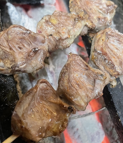 炭火で焼いた本格焼き鳥 132円(税込)~!当店自慢の炭火焼き鳥は、備長炭でじっくりと焼き上げ、素材の味を引き立てます。外はパリッと中はジューシーな肉汁があふれています。お酒にも合う、おつまみにも最適な一品。