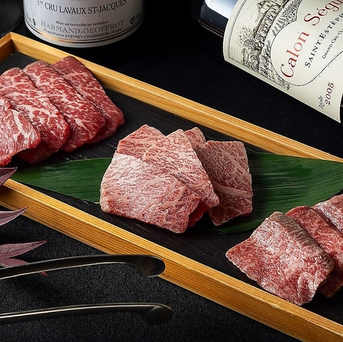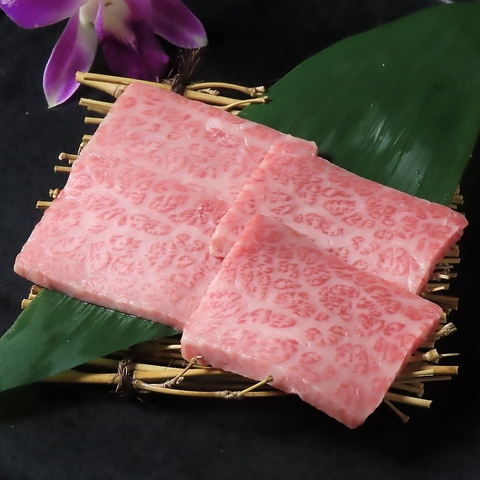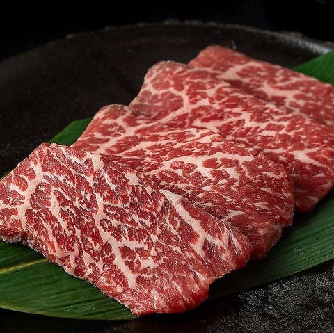当店では、その時期に最も美味しいお肉を厳選して仕入れております。取り扱うのは九州産の黒毛和牛のみ。例えば佐賀牛、宮崎牛、長崎和牛、鹿児島平松和牛、そして鹿児島・中山黒牛など、その時々の品質の高い和牛を取り揃えております。肉の職人が一切の妥協なく厳しく吟味。和牛本来の旨味をじっくりとお楽しみください。