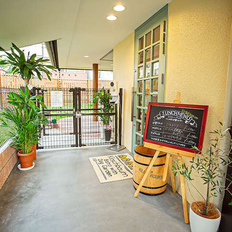 【のびのびとわんちゃんが遊べるガーデン】わんちゃんがのびのびと遊べるガーデンがございます。注)ドッグガーデン・テラス席ご利用の際は、混合ワクチン・狂犬病ワクチンの接種証明書(過去1年以内のもの)と利用料が必要となります。ご用意の程、よろしくお願い致します。