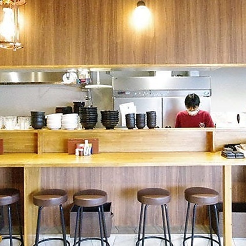 ライトで明るく照らされたカウンター席は、キッチンを目の前にしたライブ感あふれるお席。1~2名様でのご利用にぴったりです。店内に流れるヒットソングや懐メロも心地よい♪仕事帰りに軽く飲みたいときはぜひお立ち寄りください!さらに店内奥には片側ソファーのテーブル席も。3名、6名様テーブルとなっており、合わせて9名様でのご利用もOK!