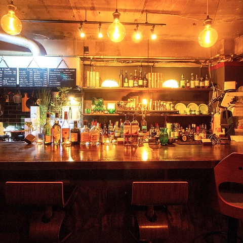 【温かみ溢れる空間で楽しむ】秋冬は焚き火を眺めながら静かにお酒を楽しめるカウンターと2名掛けテーブル席を6席ご用意しています。テーブルは最大6名様でご利用いただけるので、女子会などグループでのご利用にもおすすめです!一品料理も充実のショットバーでの2次会利用も大歓迎です♪三宮で夜カフェ・ショットバー!
