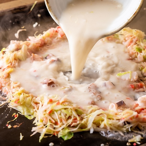 プロの職人が焼き上げる最高のお好み焼き!ふんわりと焼き上げる、自慢のどんどこどん玉。ふんわりキャベツ、特製ダシ、秘伝のソースが絶妙に絡み合い、外は香ばしく、中はジューシー。みんなでワイワイ焼いて楽しむ時間も、この料理の一部です。