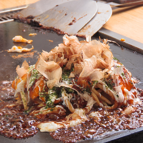 当店は様々な創作お好み焼き、もんじゃ焼きをご用意しております。もんじゃ焼きは出汁にこだわっており、10種類の厳選した材料を5時間以上煮込んでつくっております。それぞれのもんじゃ焼きによって味付けも変えておりますので飽きることなく楽しめます!一番人気はやっぱりこだわりのあごだし明太子を使用した明太もちチーズもんじゃ!